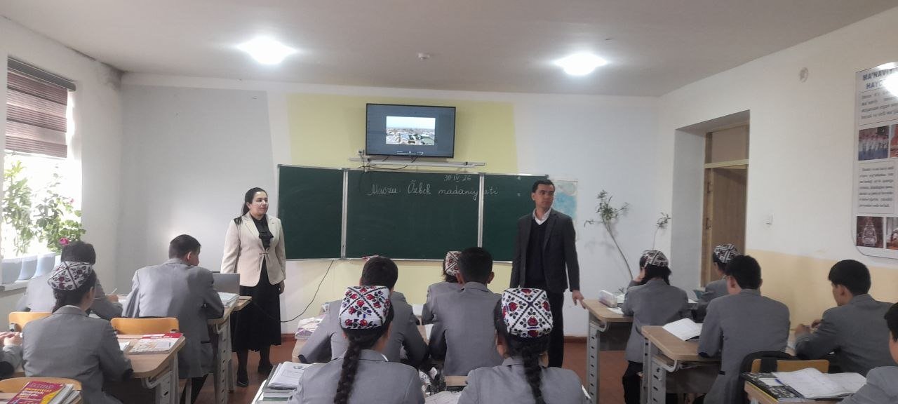 Bogʻot tuman 2-son ixtisoslashtirilgan maktab-internatida “O‘zbek madaniyati” mavzusida navbatdagi “Kelajak soati” mashgʻuloti tashkil etildi. 📚 Mashgʻulot davomida o‘quvchilarga o‘zbek xalqining boy madaniy merosi, milliy urf-odat va an’analari, qadriyatlari hamda ularning bugungi kundagi ahamiyati haqida tushunchalar berildi. 🎭 Shuningdek, o‘quvchilar milliy liboslar, kuy-qo‘shiqlar, xalq og‘zaki ijodi namunalariga oid bilimlarini namoyon etdilar. 💬 Suhbat va muhokamalar jarayonida o‘quvchilar milliy madaniyatimizni asrash va rivojlantirish borasida o‘z fikr-mulohazalarini bildirdilar. ✨ Mazkur mashgʻulot o‘quvchilarda milliy g‘urur, Vatanga muhabbat va qadriyatlarga hurmat tuyg‘ularini yanada mustahkamlashga xizmat qildi.